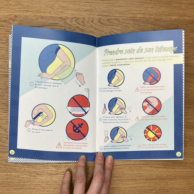 Le livret contient les informations nécessaires tout ce que le futur doit savoir sur l’avant, le pendant et l’après un rdv chez un tatoueur.
