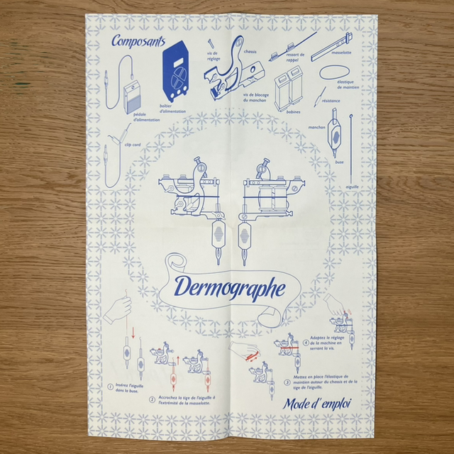 L’affiche, quant à elle, explique le conditionnent d’un dermographe à bobines.