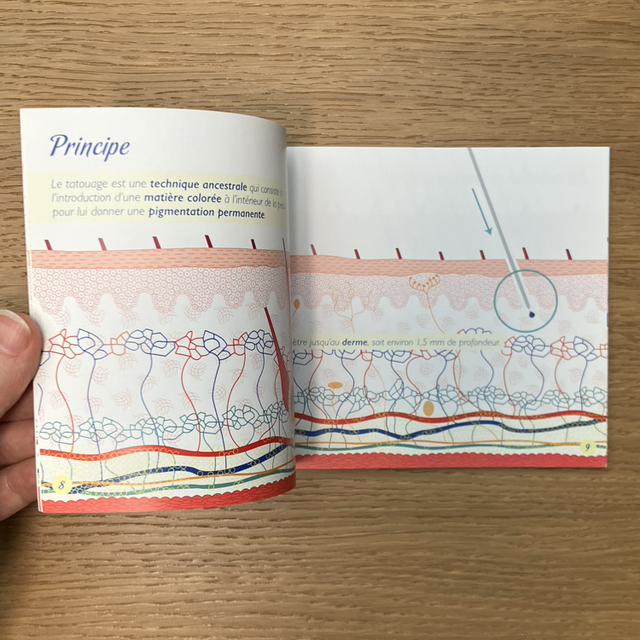 Le mini livret « L’envers du tatouage « explique ce qui se passe sous la peau lors du tatouage et du détatouage.